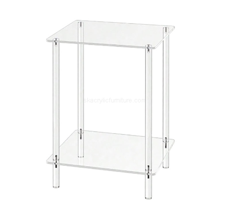 This custom acrylic 2-tier living room side table offers a chic, clear design with two spacious tiers for storage. Ideal for contemporary spaces, it blends elegance and function, available exclusively for wholesale in bulk modern furniture purchases.