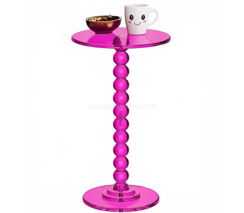 Custom translucent pink acrylic balcony small round coffee table, ideal for adding a stylish pop of color to compact outdoor or indoor spaces. Crafted from premium acrylic for strength and weather resistance. Delivered Duty Paid (DDP) service ensures no extra charges, offering a seamless, worry-free delivery experience right to your door.