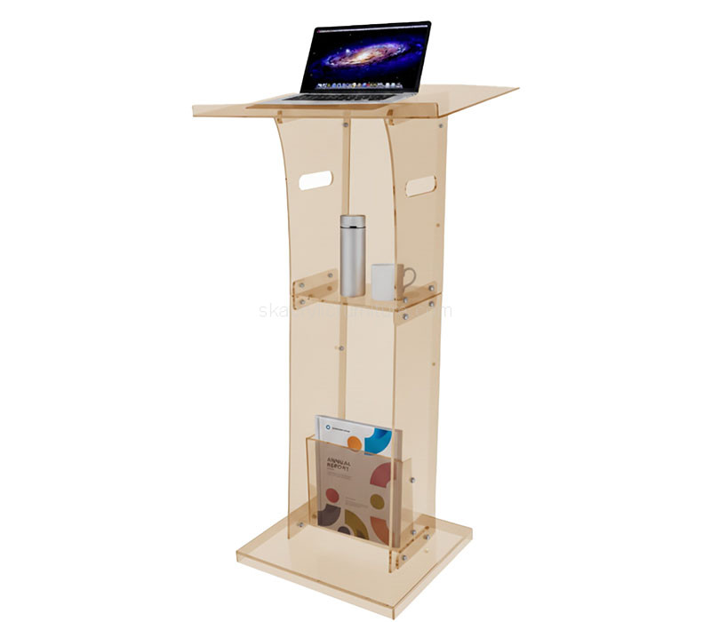 Custom translucent brown acrylic conference podium pulpits, crafted with durable materials and a sleek modern look to suit professional events, churches, and public speaking venues. The warm brown tone adds sophistication while ensuring stability and function. Worry-free shipping with no hidden charges—delivered directly to the US, Europe, and Asia.