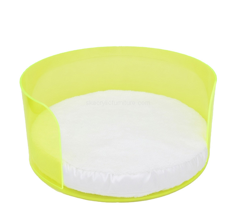 Custom bright neon yellow acrylic dog and cat bed offers a bold, modern look while ensuring comfort and durability. Crafted from high-quality acrylic, it is sturdy, easy to clean, and pet-safe. The vibrant color adds a stylish touch, making it a perfect statement piece for contemporary pet lovers.