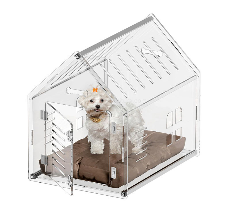 Custom acrylic indoor house-shaped dog crate, combining durability and elegance for your pet’s comfort. Its unique house-style design adds charm to any room while providing a secure, cozy space for your dog. Crafted from premium acrylic for easy cleaning and lasting use. Delivered to your door, with all taxes included.
