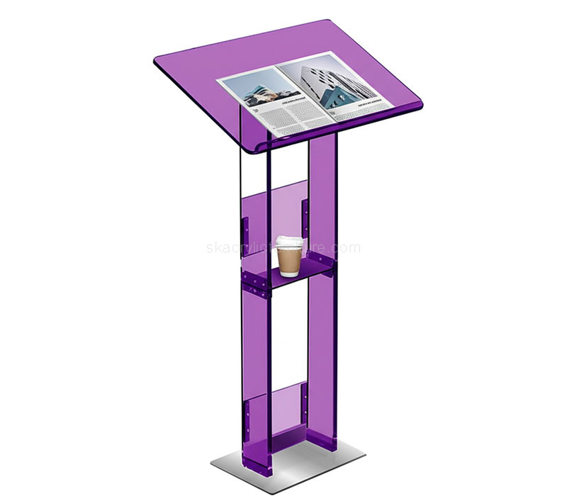 Custom translucent purple acrylic lectern stand designed for impactful speeches and presentations. With its modern, eye-catching color and sturdy build, it adds elegance to any stage, classroom, or event space. Easy to clean and maintain. Tax-free delivery straight to your door—no hidden fees, just seamless service and standout design.