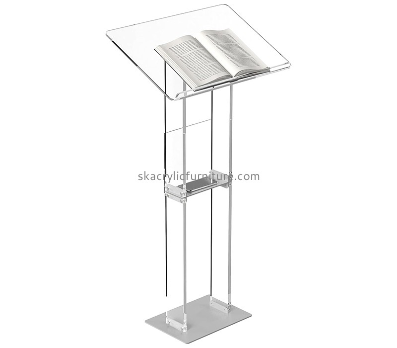 The custom clear acrylic lecterns with storage shelf offer a perfect blend of functionality and sophistication. Crafted from premium transparent acrylic, these lecterns provide an unobstructed view of the speaker, maintaining a modern and professional aesthetic.