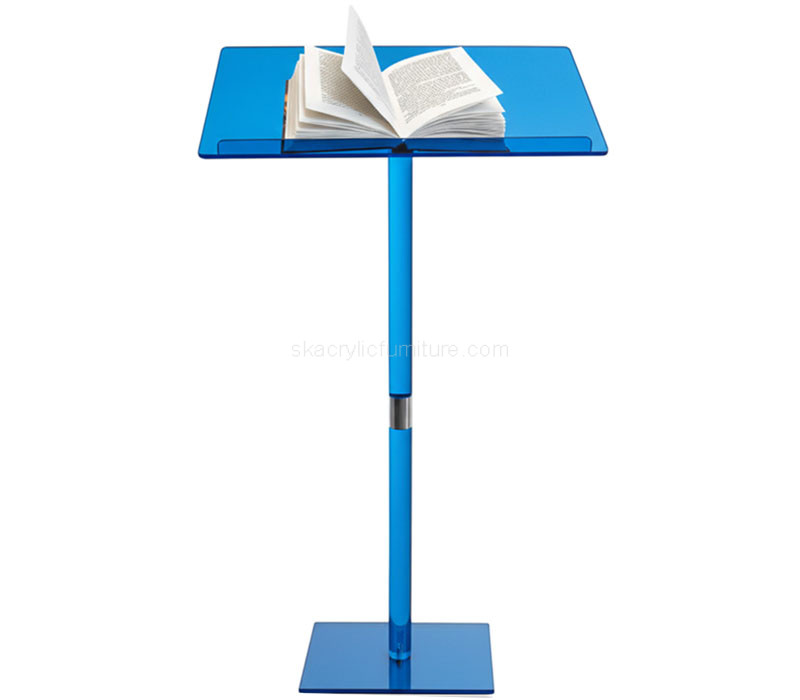 Custom translucent blue acrylic modern speech podium stand, crafted with sleek design and durable materials for conferences, events, and presentations. Its vibrant yet elegant look enhances any setting while providing stability and function. Delivered door-to-door with all taxes paid, ensuring a smooth, worry-free purchasing experience worldwide.