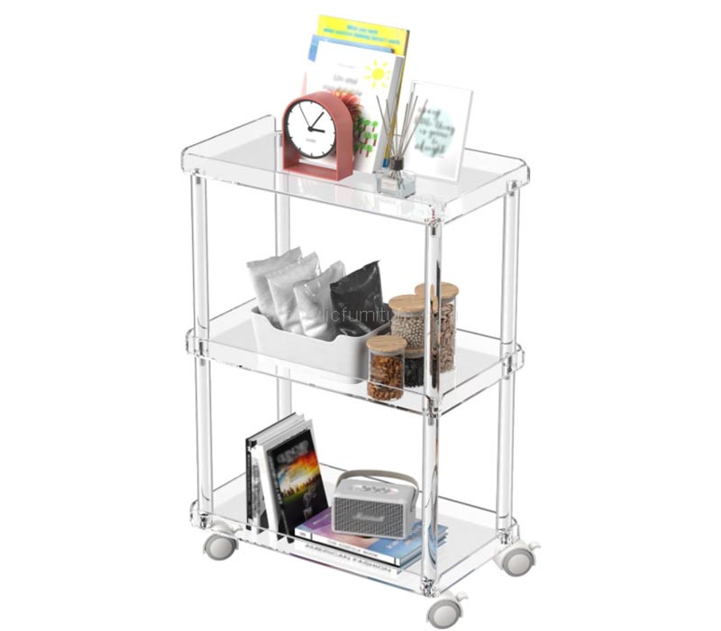 This custom acrylic 3-tier utility rolling cart combines style and practicality. With three spacious shelves, a smooth rolling design, and sturdy construction, it’s perfect for organizing and transporting items. Available for wholesale only, catering to bulk buyers and businesses.
