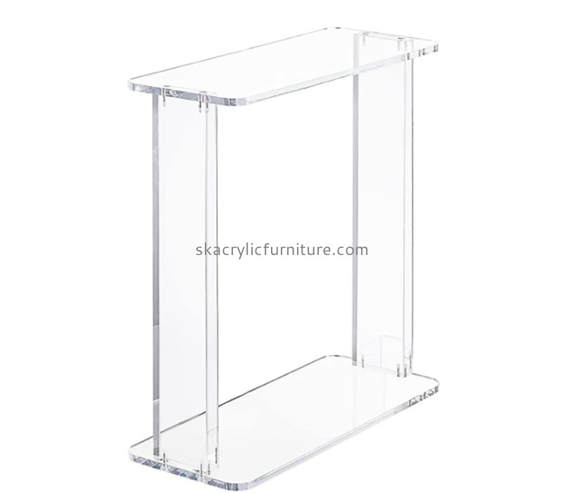 Introducing our custom clear acrylic narrow side table, a sleek and versatile solution for maximizing space in any room. Crafted from premium clear acrylic, this table features a narrow design ideal for tight spaces such as hallways or between furniture pieces.