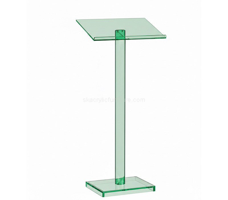 Custom translucent green acrylic presentation podium featuring a clean, contemporary design that enhances any speaking environment. Made from premium acrylic, it offers durability, stability, and a distinctive modern look. Ideal for conferences, classrooms, exhibitions, churches, and corporate events, delivering both functionality and visual appeal.