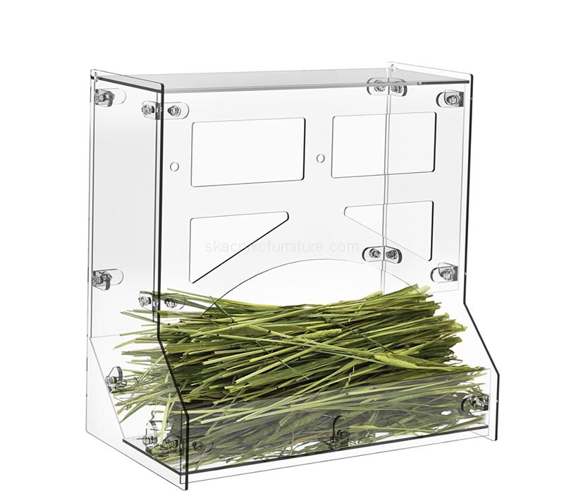 Custom acrylic rabbit grass feeder, designed for safe and convenient feeding of rabbits and small pets. Made from durable, transparent acrylic, it allows easy monitoring of hay levels while keeping food clean and accessible. Smooth edges ensure pet safety, and its practical design simplifies refilling and maintenance for everyday use.