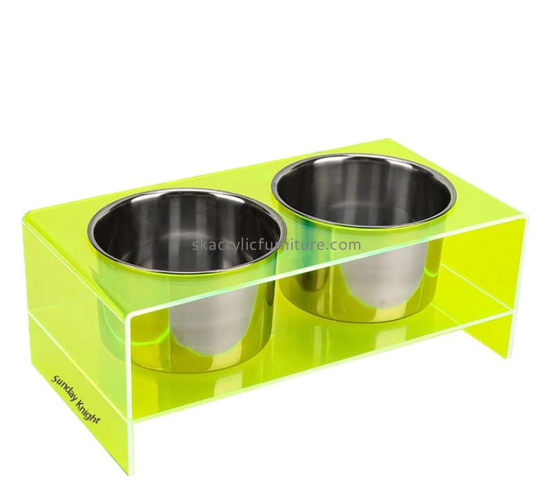 Sunday Knight's custom wholesale fluoresent green acrylic pets feeder stand is a vibrant and practical addition to pet care. Crafted from durable acrylic with a fluoresent green hue, this feeder stand is designed to last while providing a stable and elevated platform for pet food and water bowls.