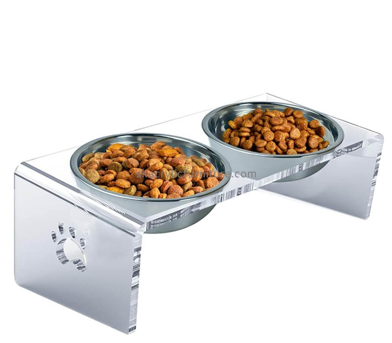 Introducing our custom wholesale acrylic raised cat and dog feeding station, the perfect blend of style and functionality. Crafted from high-quality, durable acrylic, this feeding station is designed to elevate your pet's dining experience. The raised design promotes better digestion and reduces strain on your pet's neck and joints.