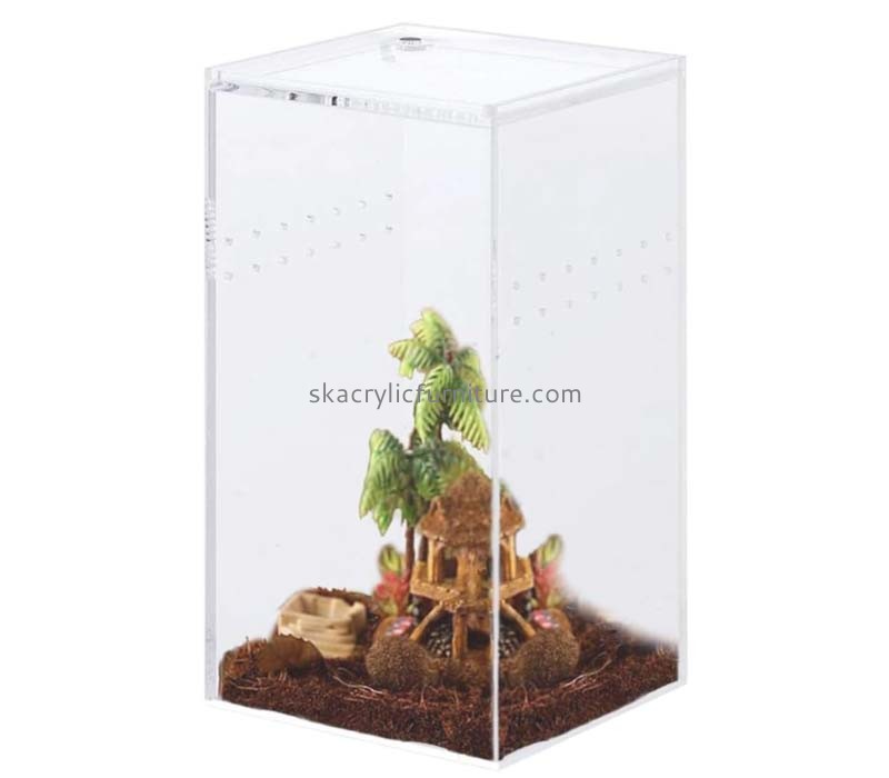 This custom wholesale clear acrylic reptile terrarium offers a spacious and transparent habitat for reptiles, ensuring optimal visibility while providing a secure and comfortable environment. Crafted from high-quality acrylic, it boasts durability and clarity, allowing for easy observation of your pet.