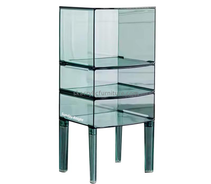 Introducing our custom wholesale translucent blue acrylic side table with storage! This stylish and modern piece is perfect for adding a touch of elegance and sophistication to any room.