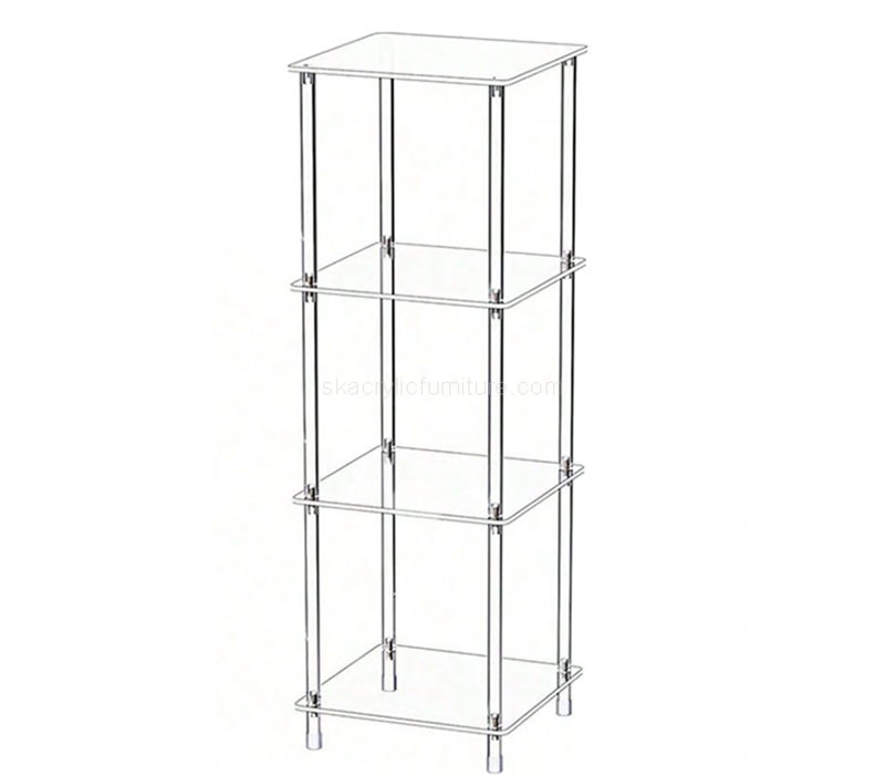 A custom acrylic 4-tier square side table, designed to offer both style and functionality. Perfect for wholesale, this modern table features multiple tiers for organized storage or display, adding a sleek, contemporary touch to any space or decor.