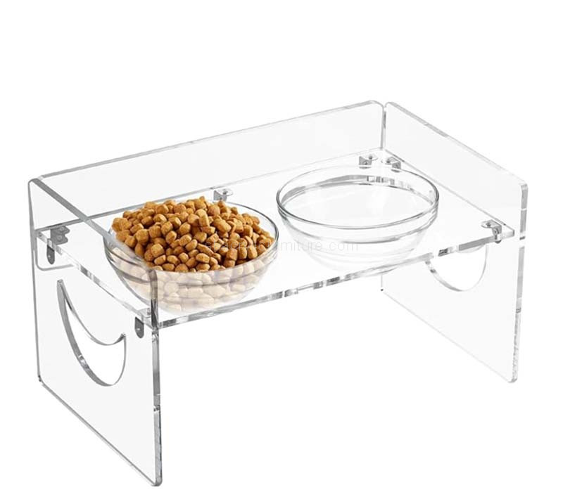 A wholesale custom acrylic dog bowls stand, designed to elevate feeding bowls for improved posture and digestion. Durable and easy to clean, this stylish stand offers a modern touch to your pet’s feeding area. Fully customizable to fit any décor.